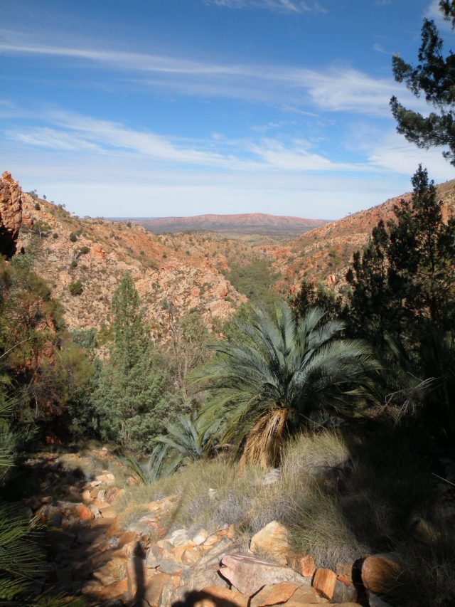 We took some photos before starting the return trip along the trail. Along the way we came to a side track which was part of section 3 of the Larapinta Trail. We had heard if you went up this section of track you would be able to have a different view of the chasm. After a quick chat we decided to give it a go so up the steps we went.
