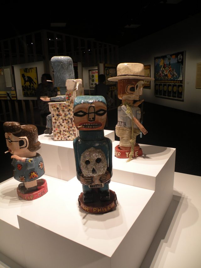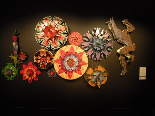 Had a very relaxing morning. Prepared some food for a picnic before driving into Darwin to the NT Museum and Art Gallery. Before going in we sat on the grass near the beach and ate our picnic lunch. Outside the gallery there was a small colourful display of car doors turned into artworks by indigenous artist Michael Nelson Tjakamarra.
