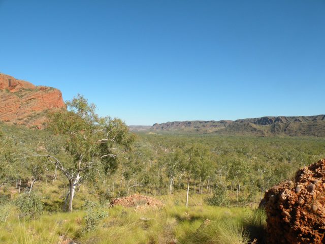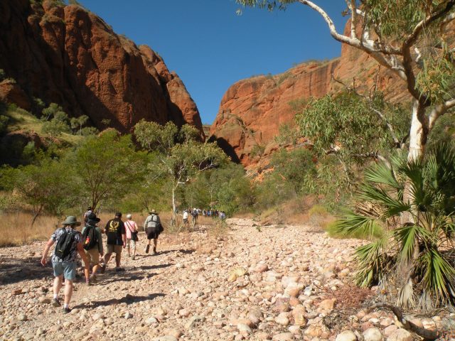 ready for an amazing day. Found a seat about half way back and soon after making ourselves comfortable we were on our way. The trip was slow with mostly good road but in some parts the 4WD crawled over a jagged, uneven, rocky surface at a snail’s pace. After an hour and a half or so we stopped briefly at the Purnululu National park office before heading to the western side of the national park. We stopped near the entrance to Echidna Chasm for morning tea.