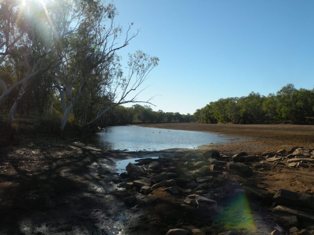 Once we had set up the caravan at the Crossing Inn we had lunch before setting off to explore the area. The main attraction seemed to be Geike Gorge. On our drive out there we stopped at a river crossing. The river was lacking water here, that’s for sure.