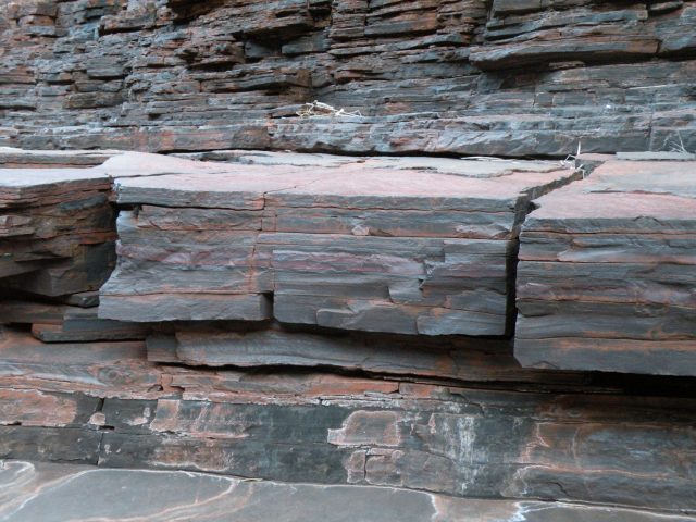 Even though the rock walls were mostly a reddish brown, occasionally we saw layers of rusty grey brown rock.