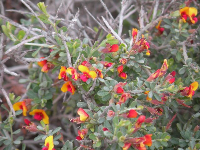 From Hamelin Pool we continued our drive south. After a couple of hours we turned towards the coast from the main highway but it was almost another hour before we arrived at the Murchison Caravan Park, our stopping point for the next few nights. After setting up the caravan we grabbed a few supplies from the supermarket and also a holiday guide from the helpful lady at the Kalbarri Visitor Information Centre. After dinner we had a look at this and planned out how we would spend our next few days. The following day we headed south out of town and drove down the coast about 12kms before turning off into the coastal section of Kalbarri National Park. We parked and followed the sealed pathway. A few shrubs were flowering alongside the path.