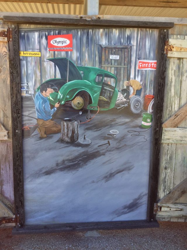A series of paintings on the old buildings here details the history of the roadhouse.