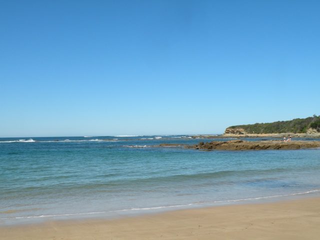 The next morning after breakfast we took a walk along the beach which backed onto the caravan park. To the right (west) this was the view.