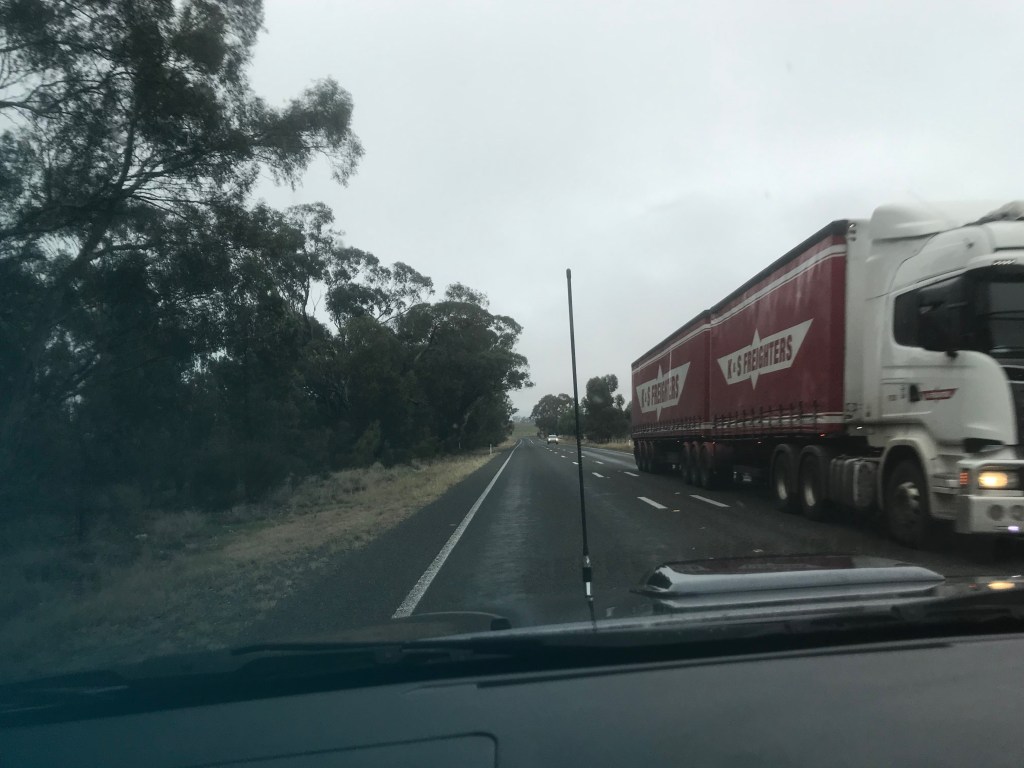 The weather the next day was pretty gloomy so a good day to be driving, even if there were a lot of large trucks on the Newell Highway (A39).