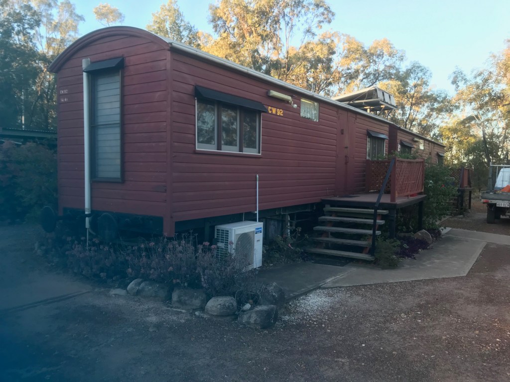 After setting up our caravan for the next we joined about a dozen others around the fire pit for a drink at beer o’clock and a good chat. If you aren’t travelling with a caravan they have set up a number of old train carriages as cabins.