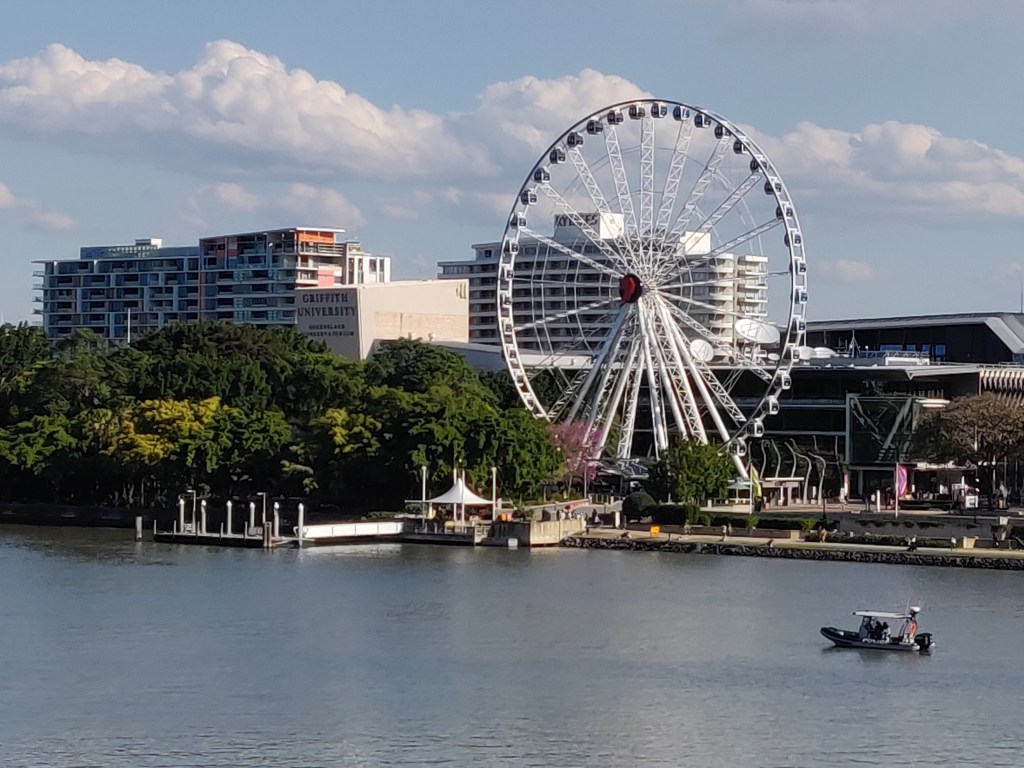 For our last day based at Bribie Island we drove down to Brisbane. We met an old friend of ours, Rex, who we had travelled around India with back in 2013. Most years he comes down to the Australian Open tennis in Melbourne and we meet up. So we thought it was time we visited him on his home turf. We met at a northern suburbs shopping centre where we parked our car. He was happy to be our tour guide for the day. We drove into the city and parked near Southbank. Next we went for a stroll along the riverside, stopping for a cool drink at one point.