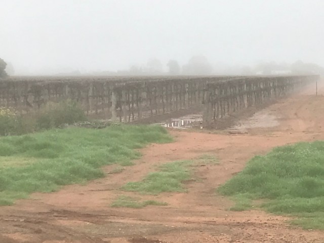 Even with the heater going Karen was well rugged up for a turn driving. We stopped to swap drivers in Griffith, which was also under a heavy fog. It’s well known for being the centre of an agricultural area. Rice, oranges and vineyards being obvious to us as we drove along.
