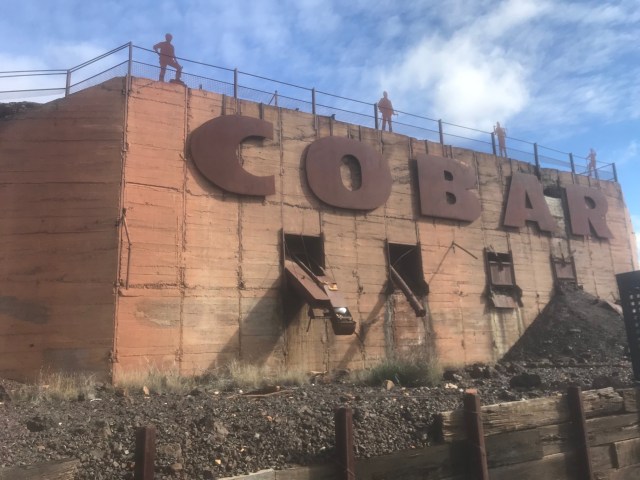 At Cobar we stopped for a change of driver. Their town sign, modern, but indicative of their mining history.
