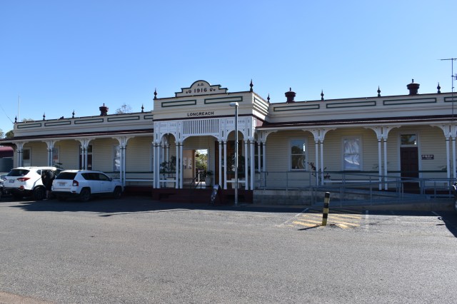 Glad we didn’t take a real flight. Certainly pleased our most recent pre-COVID flights were in an Airbus or a Boeing 777. This brought us to the end of the museum section so after passing through the shop area we headed back to our rig and made our way through Longreach passing the well preserved old railway station as we drove off towards Winton.