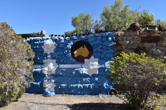 Part art, part architecture, part genius, part weird, but largely one man’s practical construction which uses lots of junk culled from the local tip to make a 2m high wall down the side of his property.
