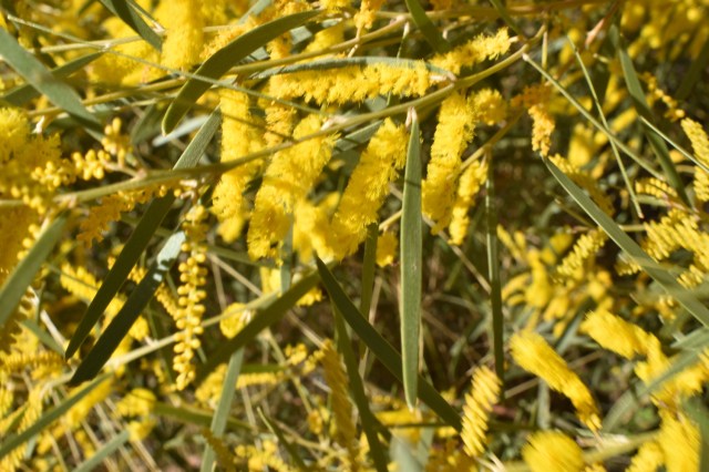 Once we were on the move again the traffic spaced out as we made our way east. We passed through a couple of small towns, Prairie and Torrens Creek before coming to a roadside stop, after about an hour and a half, on the edge of White Mountains National Park. It was a good time to swap drivers, have a drink and look closely at some spectacular wildflowers which took our attention. This Acacia was in total bloom.