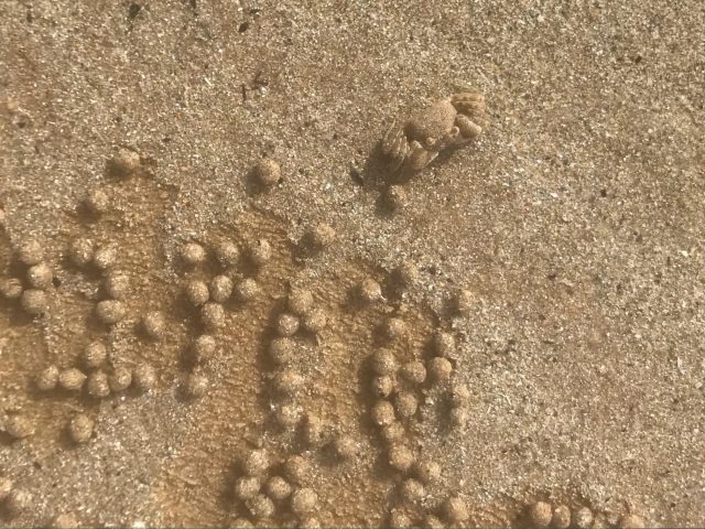 Mel was very happy to explore things as we walked along. Here’s a well camouflaged crab. I had to be quick to take a snap before Mel approached and it went scurrying off out of her leash range.