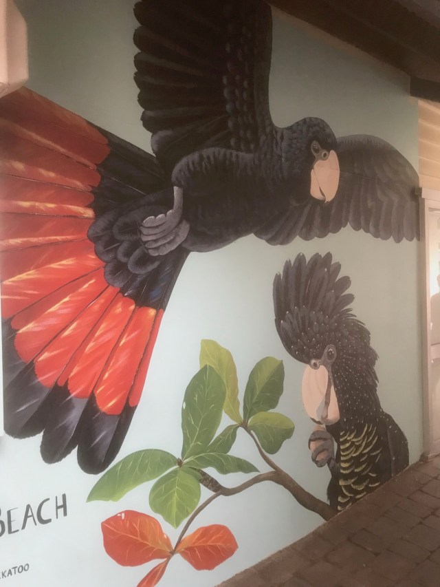Our first full day we took a walk along the main street checking out the cafes, shops and the Tourist Information Centre. The staff there were able to give us maps of local walks and information about tours, the Sunday markets, Dunk Island water taxis and dog friendly cafes. A couple of the shops had attractive, colourful murals of local native birdlife painted on their walls we noted.