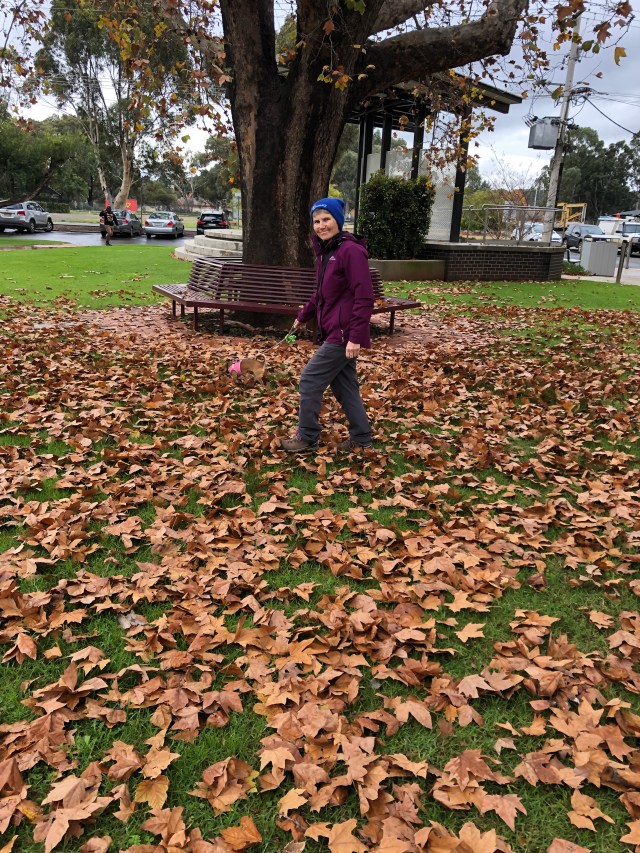 Hearing rain on the caravan roof whilst in bed is always nice but when it continues all morning it’s not conducive to seeing the sights of a new location. Finally it stopped around noon so in the car we hopped and drove into town. First up a few supplies were purchased. Next we took a walk around the town centre. Lots of autumn leaves in the park area opposite the shops.