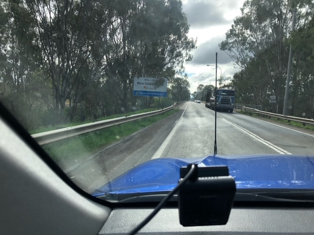 Breakfast finished we hooked up the caravan and after farewelling Denise and Wayne we drove off. As we approached Shepparton we refueled and took the heavy vehicle route around town. An hour later we approached the border, crossed the Murray River