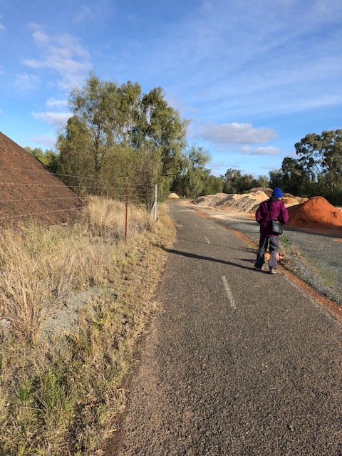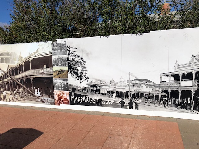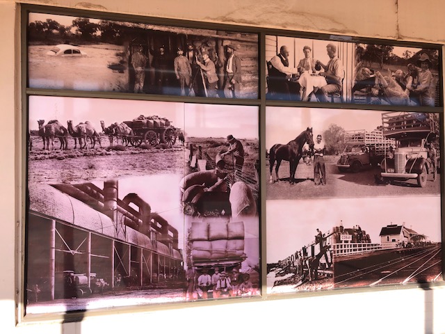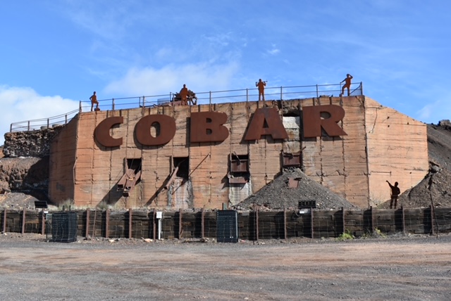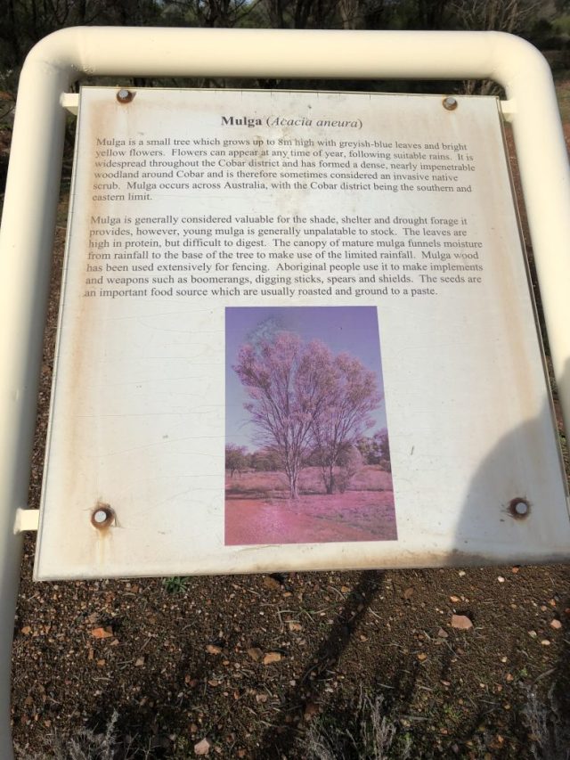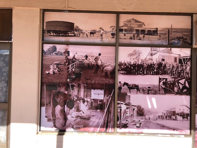 A very cool start to the day didn’t encourage us to rush out of bed. Eventually we left our cosy bed and ate breakfast. We drove back into town and parked near the supermarkets so we could grab a few things for lunch and dinner. As we walked along the main street we noticed a photo mural wall detailing various stages in the history of Cobar. Very interesting.