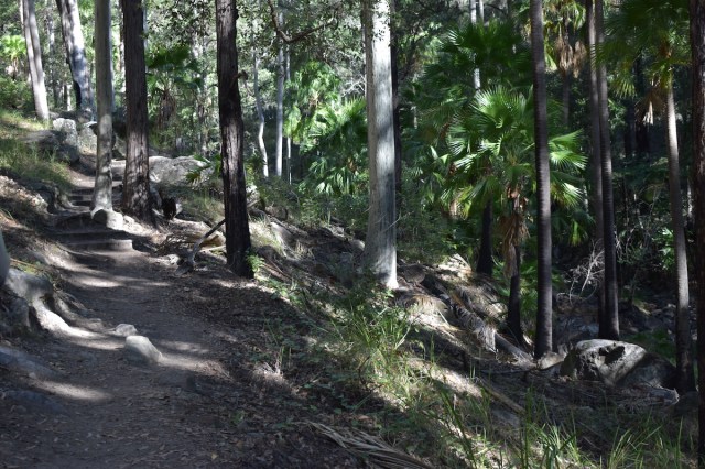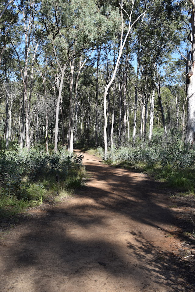 and off along the main track. Many young seedlings from the parent eucalypts above could be seen growing along the path edge.