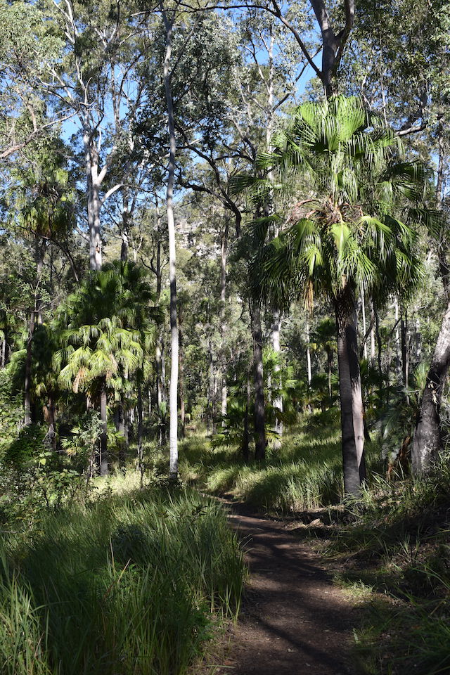 Following on from a really sound sleep and a late breakfast we made the short drive back towards the entry to Carnarvon Gorge National Park, this time stopping at the carpark for the much shorter walk along Mickey Creek followed by another diversion up Warrumbah Creek Gorge. There were only a couple of other cars in this small carpark. Grabbing our daypacks we made our way past the sign