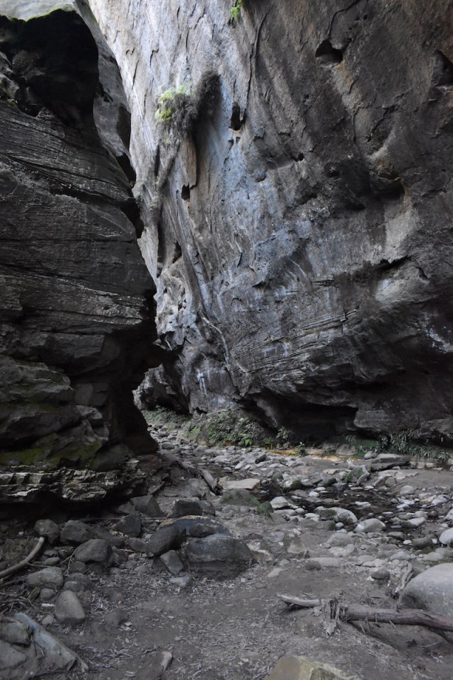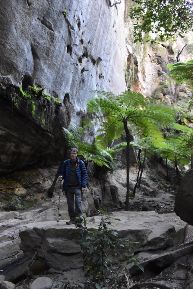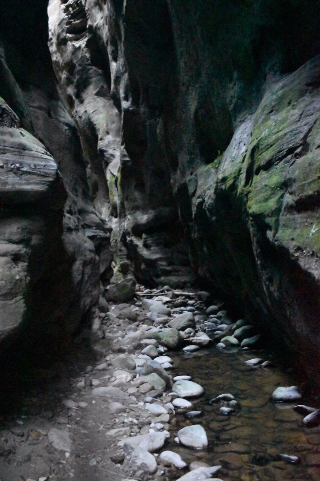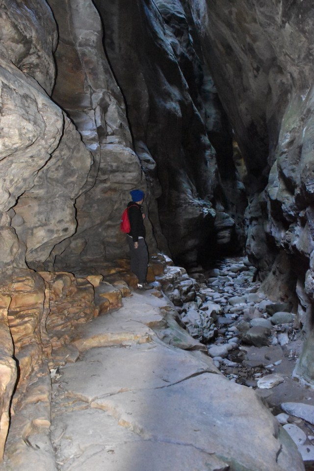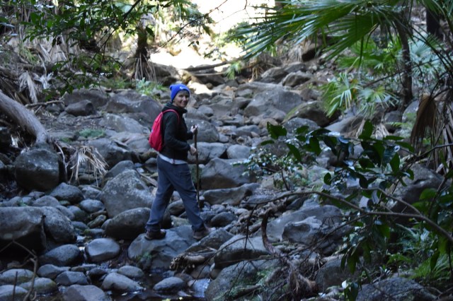 More water appeared in the creek so we climbed back onto the rock ledge.
