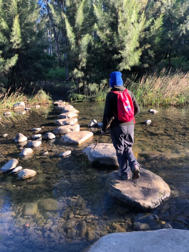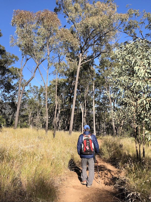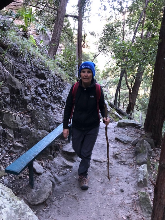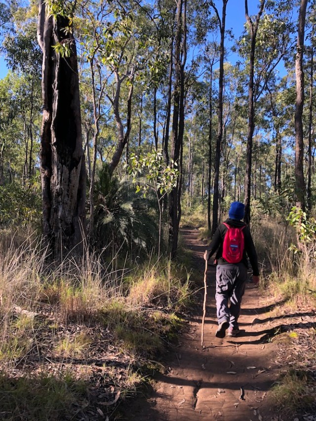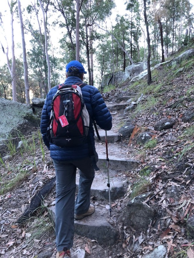 We had saved the Boolimba Bluff walk until the last day as we felt we would be well conditioned to walking by this point and it was suggested you make a very early start to see the sun shine its early rays on the rock face on the opposite side of the gorge. I’m not a morning person so a compromise was reached and soon after a 7am breakfast we were in the car, on a very cold morning, and heading out to the carpark at the Visitor Centre by 7:40. Gathering our daypacks and heading off, we pass a friendly local.