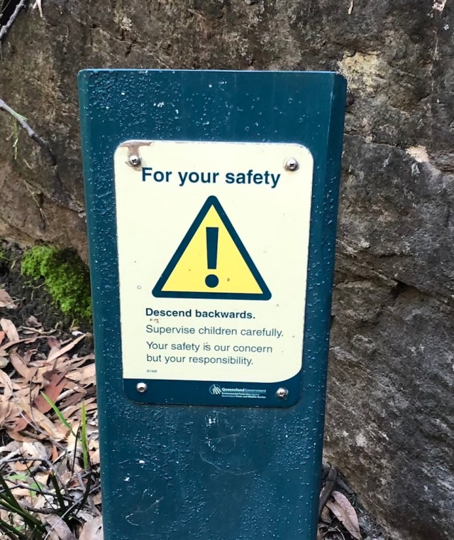 As we came to the first ladder we saw this sign telling us to descend backwards.
