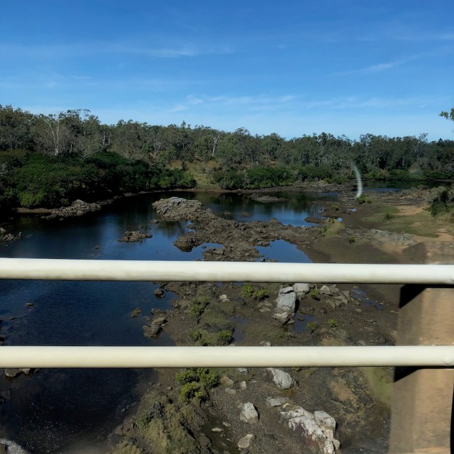 and out onto the Bruce Highway. Off we drove. As we crossed the Calliope River we noticed the water level here was down.
