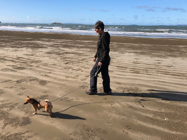 Later in the afternoon we headed across the road and made our way onto Kinka Beach. When the tide is out it is a very wide beach.