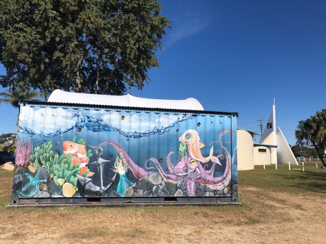 The next day we drove up to Yeppoon and visited the Tourist Information Centre to ask about dog friendly activities and cafes. At the back of the Tourist Information Centre we noticed a lovely sea life mural.