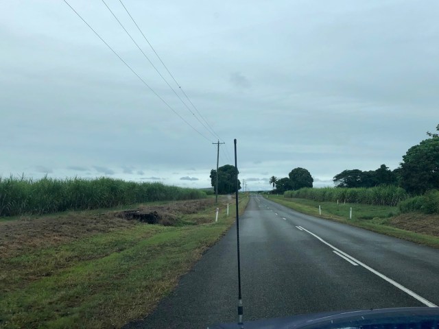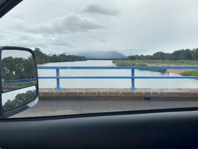 Just as we started to wander the rain came down so we scampered back into the car. It was quite gloomy so we began our drive back to Ingham, firstly crossing the Herbert River