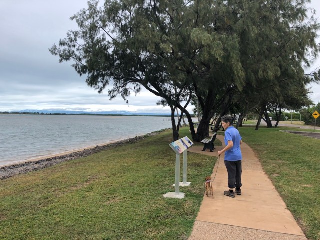 We quickly found a sealed path along the foreshore to take Mel for a walk. This catamaran was certainly sitting high and almost dry as the tide was well out.