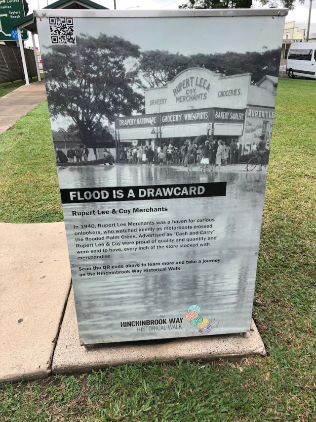 So on one of trips into town we stopped and parked up the road a bit. In the middle of the main street there is a a lot of parkland and a playground. So we took Mel for a walk along this green belt as we made our way back to the famous Lee’s Hotel (originally Day Dawn Hotel). Along the way we noticed a number of signboards detailing historic events in Ingham’s history, which we found quite interesting.