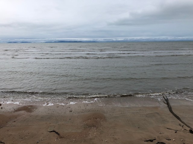 As it turned out showers persisted for most of the afternoon. Here’s our view from our absolute beach frontage site looking out to sea.