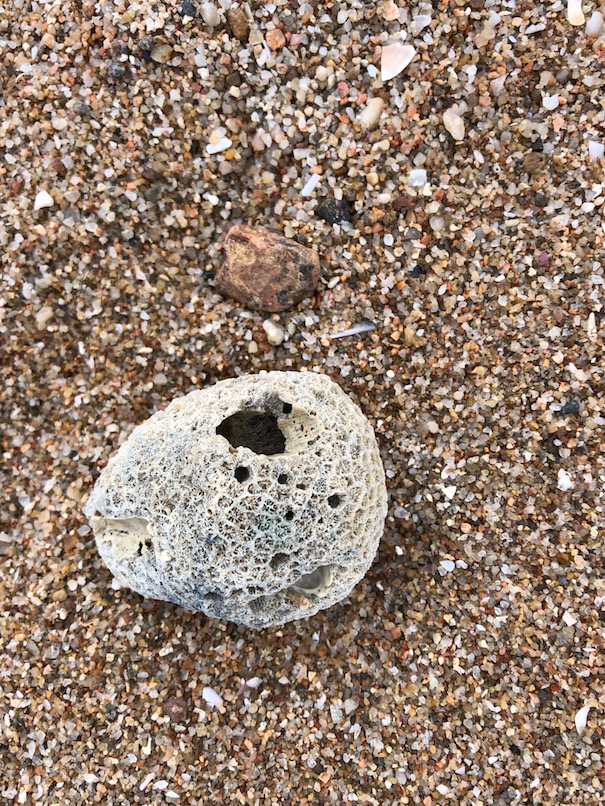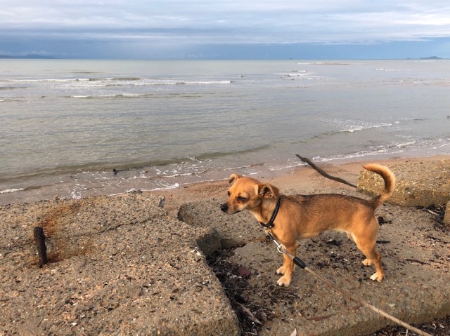 Morning came again but this time we didn’t hear the sound of rain on the caravan roof. So even though it was still cloudy off we went for a walk along the beach.