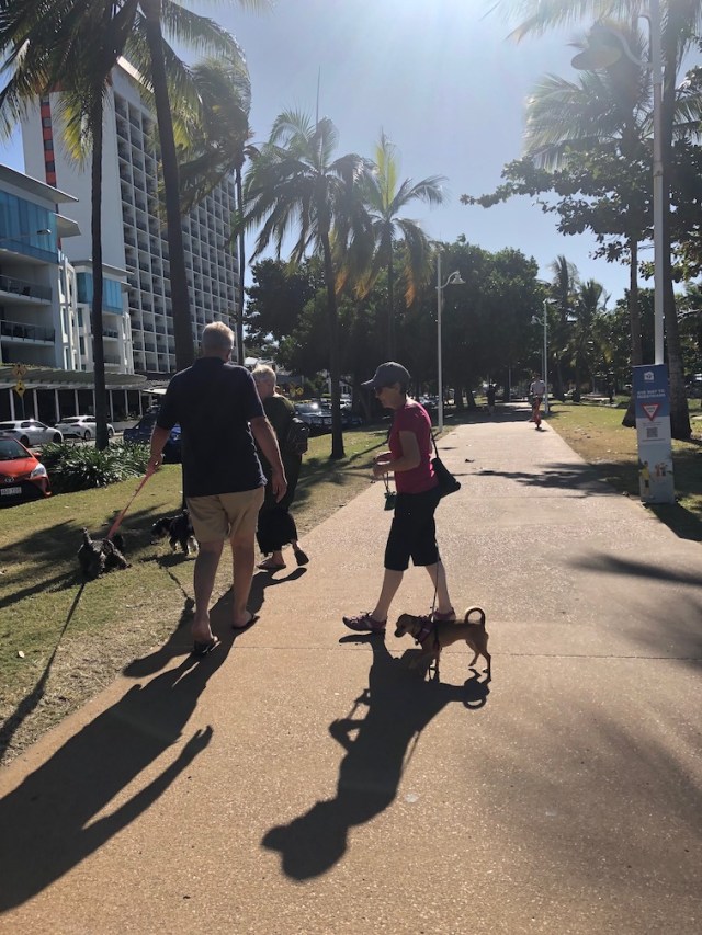 It’s a sealed pathway along the north eastern shoreline of Townsville going from the Sealink Ferry Terminal all the way up to an outdoor rockpool. When we were there the pool was empty and having a clean. It didn’t matter though because we were more interested in walking as we had our dog, Mel, with us and Phil and Dorothy had their two mini Schnauzers, Rose and Roxy with them.