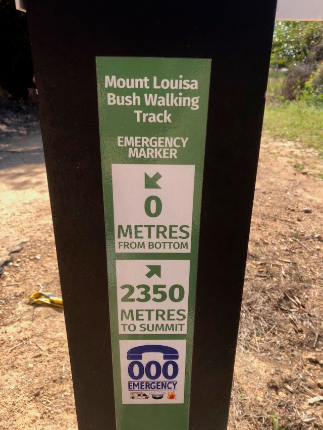 Whenever we are caravanning with our little dog Mel we are always on the lookout for dog friendly walking locations. In the Townsville area, just to the west of the main town was the Mt Louisa Lookout Walk. It was a short drive from the caravan park to the carpark near the start of the walk. It’s not a long walk but is challenging enough due to the elevation of the finish compared to the start.