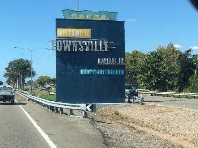 Having done the Mt Louisa Lookout Walk the day before was good preparation for taking on the Castle Hill Walk the next day with our friend Dorothy. We drove in from Coral Coast Tourist Park, passing the sign at the edge of the city limits as we went.