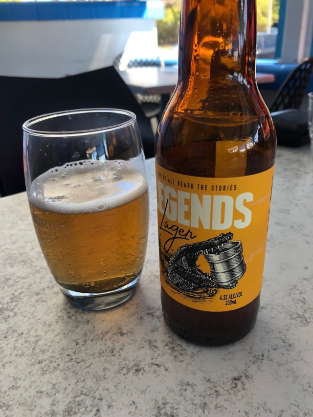 It was at the far end of the Strand. The food is Mediterranean style. I ordered salt and pepper calamari and Karen ate a Greek salad. The food arrived very quickly and was delicious. The local Legends beer was well received too. Another factor in choosing to eat there was that well behaved dogs like ours are welcome.