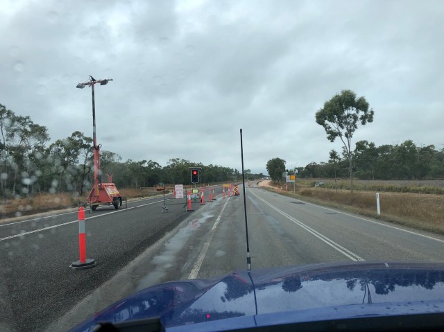 Much as we had again enjoyed our time in Bowen it was time to head south. Rain was forecast for not only Bowen but also much of the part of Queensland we would be driving through. Anyway, off we drove after packing up and hooking up the caravan. Intermittent rain fell and pretty quickly we came to out first section of roadworks. It seems like the Bruce Highway is always being upgraded or repaired.