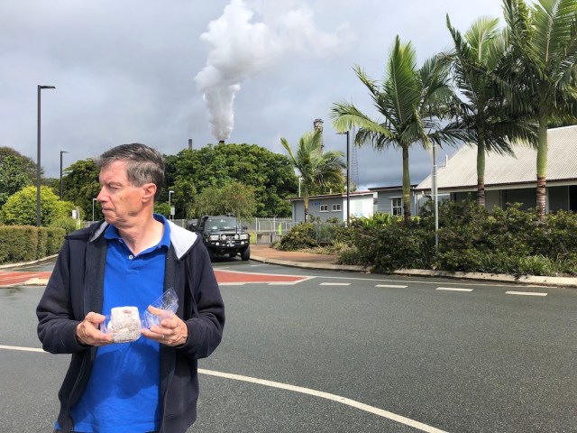 In Sarina we stopped for one of their famous pies and I bought a lamington, as it was National Lamington Day. For those who don’t know, a lamington is a dessert consisting of a buttery, flavourful sponge cake that is covered with chocolate sauce and coconut. What I didn’t know was I had been snapped after having just inspected it!