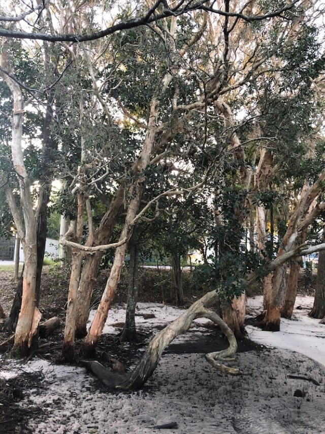 and some Melaleucas (paperbarks) that handle wet salty conditions.