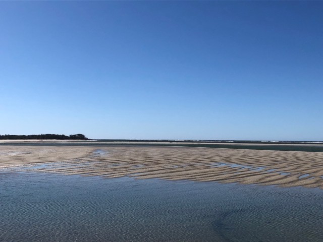 We booked in to Golden Beach Caravan Park. It was tricky to back in the caravan at first but another guy came out and guided me in a bit. Once we were set up we ate lunch. Next we drove back down to Woolworths to stock up on food for the next few days. Towards the end of the afternoon we took a walk along the foreshore trail. We could see past the northerly sand bar of Bribie island.