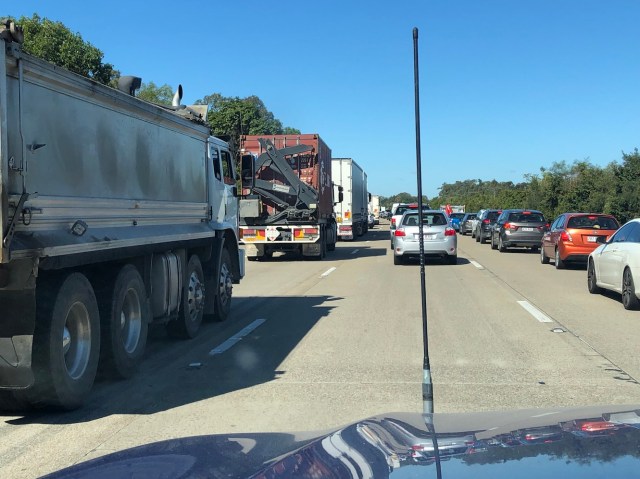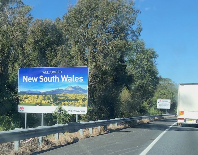 After about twenty minutes of stop, start driving the traffic began to quicken but it still took about forty five minutes to cross the border into New South Wales.