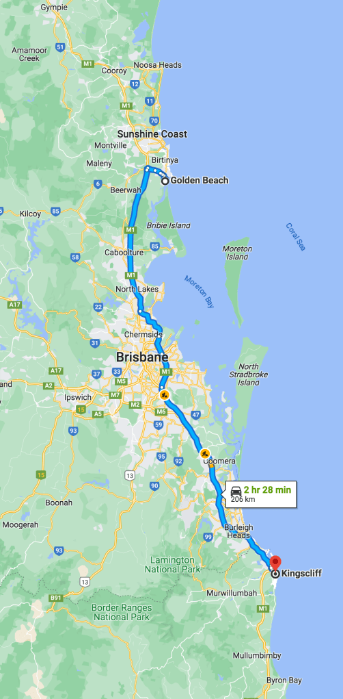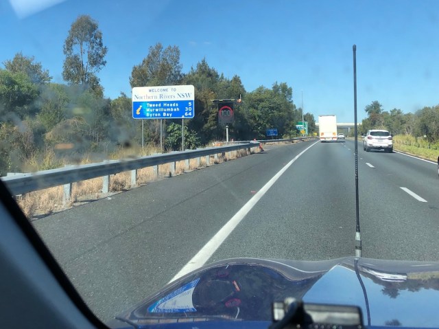 This was the day we left Queensland and continued south into New South Wales. To avoid peak hour in Brisbane we left about 9:30. This meant we would be passing through Brisbane about 10:30. Things were going well until we reached a point where the freeway split. Unfortunately we were in the wrong lane and towing a caravan means you can’t just quickly change lanes. The navigation system in the hilux did a quick recalculation and we continued making our way through Brisbane but on some less major roads. After about ten minutes we were in a position to join the M3.