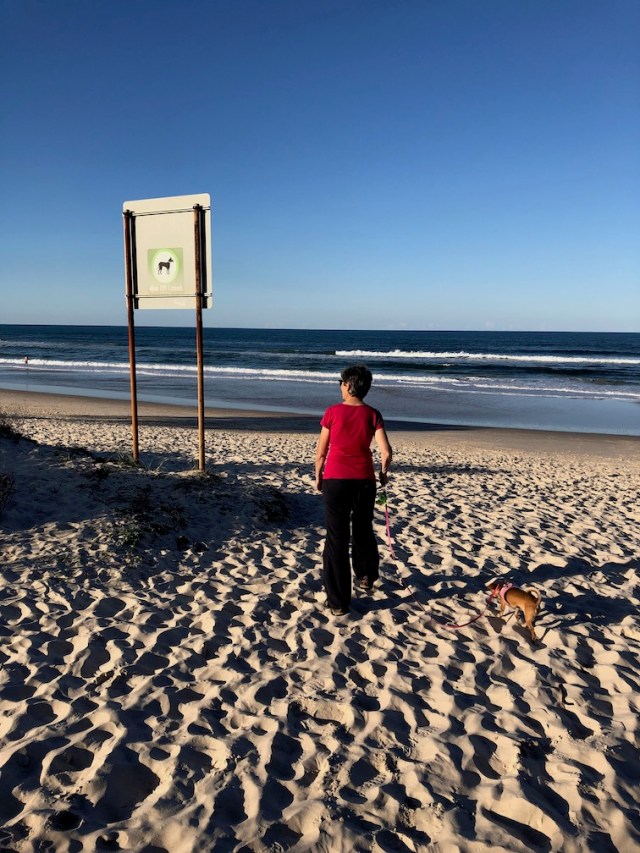 Arriving at the beach a very noticable sign showed us it was leash free to the left