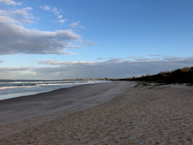 We lunched back at the caravan and most of the afternoon was spent reading due to the weather but things cleared up late in the afternoon so we drove down to the leash free beach at Kingscliff North. Mel enjoyed another good run. Here is a view looking south to Kingscliff
