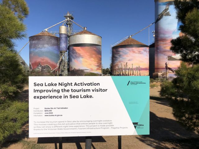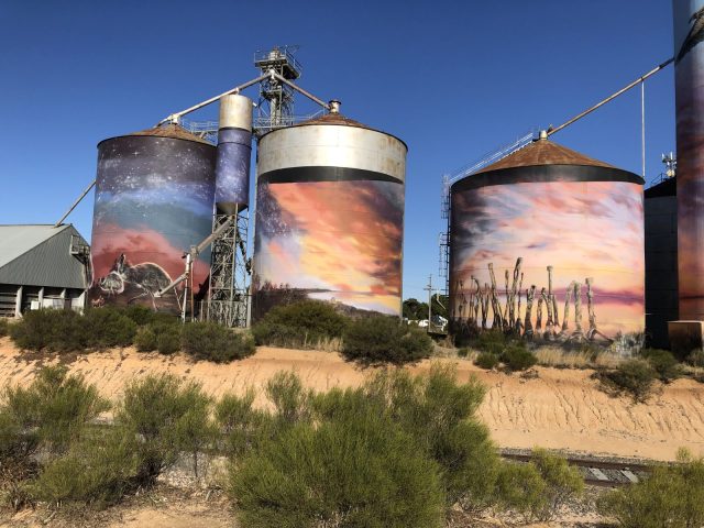 Nearby Lake Tyrell featured on a couple of the silos. Sadly for us the lake was in the opposite direction to where we were heading.