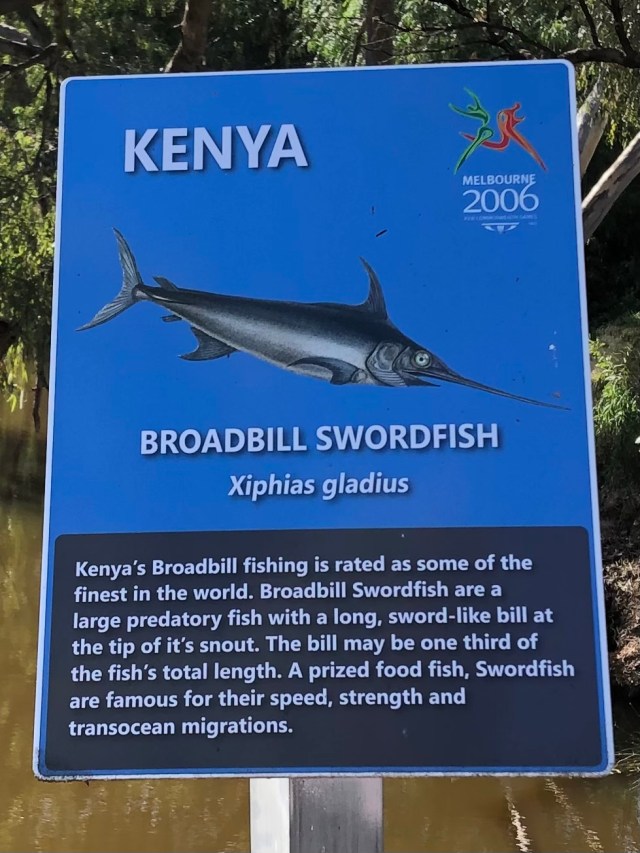 According to a nearby sign it was a Broadbill Swordfish. Given they are native to Kenya, not sure why it was there. But on closer inspection it may have had something to do with Kenya competing at the 2006 Commonwealth Games, held in Melbourne.