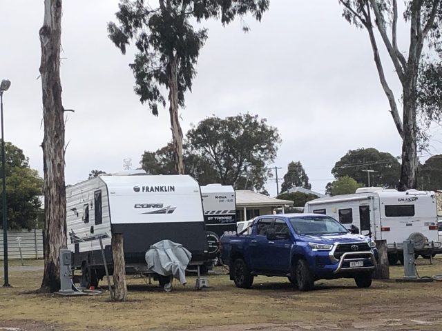 We arrived in Warwick, our stopping point, about 15:30 and set up the caravan in drizzly rain.