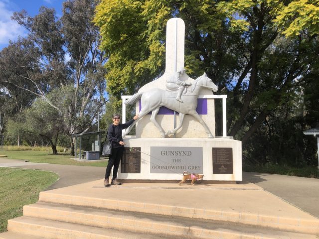 Just around the corner was the memorial to famous racehorse Gunsynd. In her youth Karen had been a big fan so we stopped for a couple of photos.